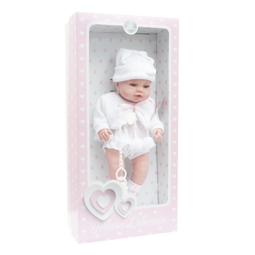 Okouzlující miminko Terezka je úžasná hračka pro každou malou holčičku, která si chce hrát na maminku. Panenka má vinylové tělíčko, ručičky i nožičky. Má milou tvářičku, která vypadá jako opravdové miminko. Faldíky na ručičkách, nožičkách a bříšku ještě více připomínají novorozence. Panenka má krásná šedá kukadla, růžové rtíky, ručičky a nožičky jsou pohyblivé v kloubech. Součástí je roztomilý pletený svetřík, pletená čepička, šatičky, kalhotky a ponožky. Obleček se dá sundat. Panenka má dudlíček na řetízku, dudlík nejde vložit panence do pusy. Kouzelné miminko je vhodné i jako milý dáreček. Délka panenky je cca 43 cm. Vhodné pro děti od 3 let. Při výrobě jsou používány výhradně kvalitní materiály.