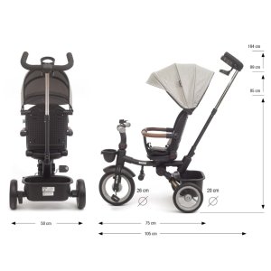 Twinkle je vybavena nastavitelnou rukojetí, funkcí volnoběhu, brzdou, bezpečnostními pásy s chrániči a pohodlným třípolohovým opěradlem a zaručuje úplnou kontrolu a pohodlí pro dítě i rodiče. Její lehký, ale odolný ocelový rám, kola s pěnovou výplní a kuličkovými ložisky, skládací konstrukce a praktické prvky, jako je síťovaná stříška, LED světlo, držák na nápoje a dva úložné boxy, z ní činí perfektní volbu pro každou příležitost – ve městě, na procházce nebo na výletě. Po odstranění rukojeti, kolejnic a stříšky lze Twinkle používat jako klasickou tříkolku.