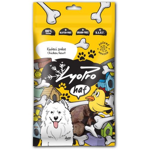 Mrazem sušené maso Lyopro je ideálním pamlskem pro všechny kočičí gurmány a vyznavače BARF – syrové stravy. Protože pamlsky neobsahují dráždivé konzervanty, barviva ani nejčastější alergeny, je skvělou volbou pro psy trpící celiakií či potravinovými alergiemi. Doporučené podávání: