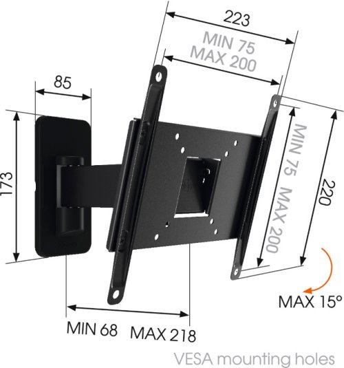 Univerzální držák s jednoduchým ramenem Hlavní vlastnosti: - maximální poměr výkon/cena - nosnost 15 kg - univerzální uchycení 75x75,100x100, 200x100 a 200x200 - dva klouby, nastavitelný náklon 0-15 …