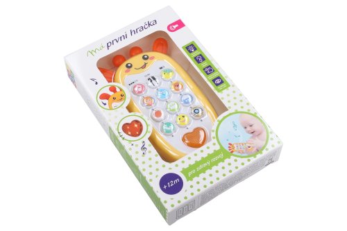 Telefon dětský žirafa. Velikost 13,5 cm. Vydává světelné a zvukové efekty. Efekty se aktivují tlačítky. 3xAAA baterie (nejsou součástí).