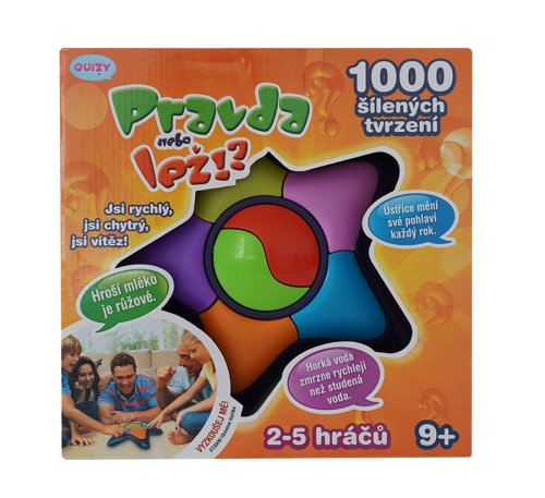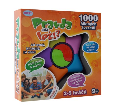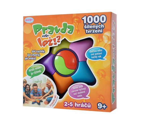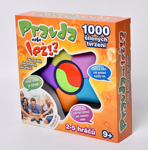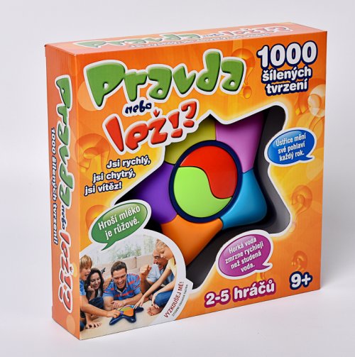 Elektronická společenská hry pro 2 - 5 hráčů. Urči si barvu, pod kterou budeš hrát, odpověz na tvrzení (1000 nahraných tvrzeních), které ti rozhodčí řekne a získáš body. Pokud odpovíš špatně, tak body ztrácíš. Rychlá, zábavná a svižná hra pro celou rodinu. Vhodné pro děti od 9 let, funkce Try me.
