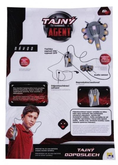 Staň se tajným agentem! S tajným odposlechem uslyšíš vše, co kdo povídá! Poslouchej přes dveře nebo tajně umísti štěnici do místnosti a potom si přehrávej pořízené nahrávky! Štěnice drží na většině povrchů. Sluchátka jsou součástí balení. Provoz na 3 baterie AAA (nejsou součástí balení). Vhodné pro děti od 6 let.