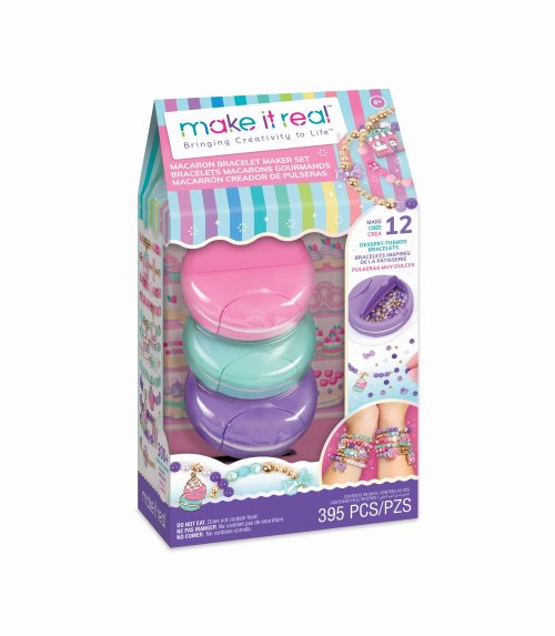 Díky 3 výrobcům náramků ve tvaru makaronů jsme vyrobili náramky ještě sladší! Každý macaron obsahuje vše potřebné k výrobě 4 náramků pro celkem 12 sladkých doplňků. Vytáhněte a obtočte šňůru po obvodu macaronu, abyste šňůru změřili a odstřihli. Otevřete pouzdro a najděte přívěsky a korálky s motivem dezertů připravené k ozdobení každého náramku. Noste rozkošných 12 náramků nebo darujte přátelům, abyste se podělili o nějakou sladkost! Ukládejte náramky a materiály zpět do macaronů mezi řemeslnými seancemi pro zábavu bez nepořádku. To je skvělý tip na dárek pro mladé kreativce, ať už k svátku, narozeninám nebo jen tak! Darujte kreativitu a sebevyjádření. Ideální pro věk 8+.