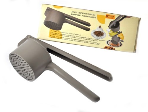 Kvalitní pevné mačkadlo vyrobené z hliníku se světle šedým lakováním, slouží k lisování vařeného ovoce, zeleniny, brambor a škvarků. Lisovací otvory průměr 2 mm. Italský výrobce. EAN 8005498070308