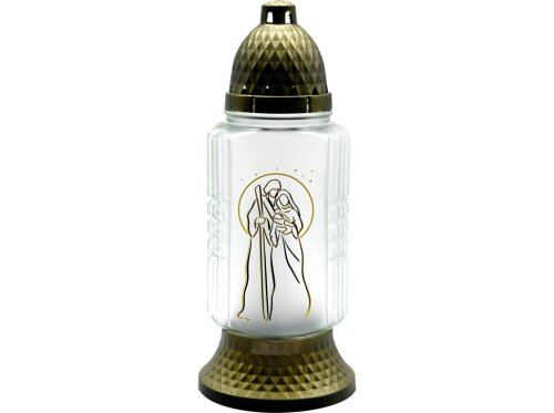 Hřbitovní lucerna Madona o výšce 27 cm je klasickým a důstojným doplňkem pietního místa. Je vyrobena z pevného skla v kombinaci s kovovými prvky, které chrání plamen před větrem i deštěm, a tím zajišťují bezpečné venkovní použití.