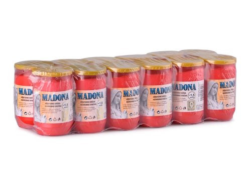 Olejová svíčka Madona v červené barvě, vhodná pro hřbitovní účely. Hoří až 1,5 dne.