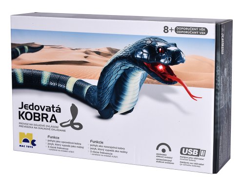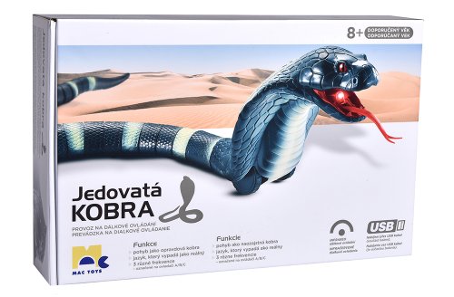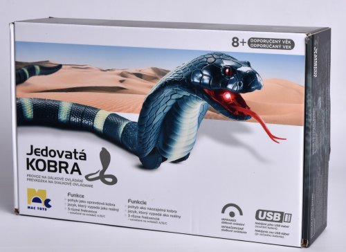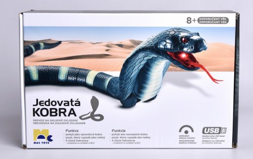 Plazí se po zemi jako živá kobra. Kobra se nabíjí přes USB kabel. Dvě barevná provedení.