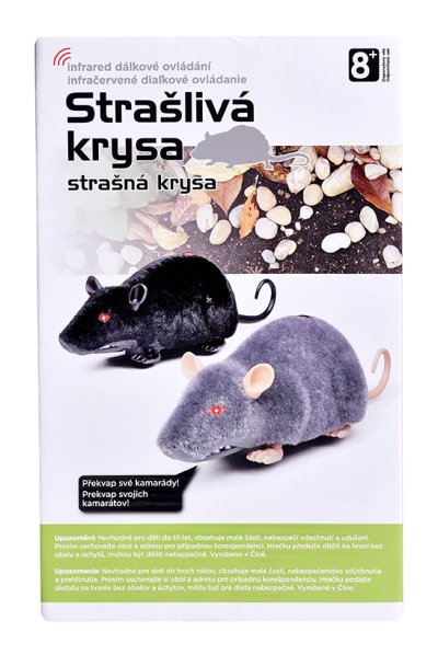 Krysa na dálkové ovládání. Chodí všemi směry. Dvě barevná provedení. Chodí tiše, jako živá myška.