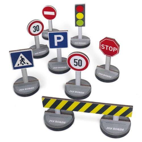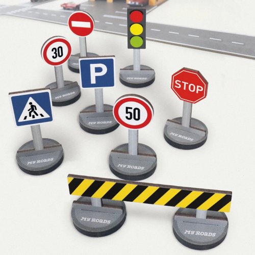 MyRoads je k životnímu prostředí šetrná hra z udržitelného, přírodního dřeva z odpovědných zdrojů. Dílky jsou vyrobeny německou společností Werkhaus. Spolu s MyRoads Starter sadou (zahrnující všechny druhy silnic), naleznete v této řadě spoustu doplňkových sad, jenž můžete jakkoli vzájemně kombinovat. Tato sada obsahuje 9 dopravních značek, jenž mohou sloužit jako doplněk k silnicím příslušné řady. Poznámka: Jelikož jde o výrobky z přírodního dřeva mohou vykazovat drobné barevné odchylky. Autíčka a silnice nejsou součástí balení. Hlavní vlastnosti: obsahuje 8 dopravních značek a 9 podstavcůkompatibilní se všemi produkty řady MyRoadspodporuje představivost, obratnost a koordinacivyrobeno z udržitelných a zodpovědně získaných přírodních materiálů