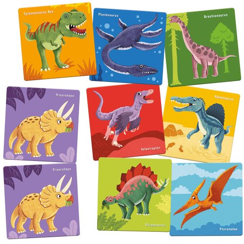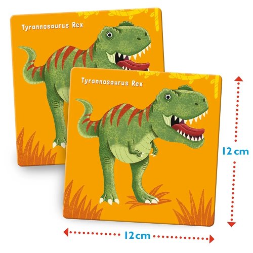 Který dinosaurus měl pouhé dva prsty? A jak se jmenoval jeho hrůzostrašný vrstevník, jenž obýval mořské hlubiny? V této zábavné, klasické hře mohou malí i velcí fanoušci dinosaurů objevit osm nejslavnějších prehistorických tvorů, dozvědět se jejich jména a přitom potrénovat paměť. Buďte pozorní! Kdo najde mezi skrytými kartami nejvíce dvojic obrázků, vyhrává! Hlavní vlastnosti: rozvíjí logické myšlenítrénuje postřeh a paměť dětí