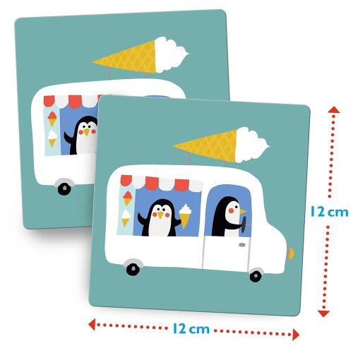 Tady je taxík, tam projíždí skútr... Kdepak se skrývá zmrzlinový vůz? Pro tuto klasickou hru je nutná nejenom dobrá paměť, ale i trpělivost. Kdo najde mezi skrytými kartami nejvíce dvojic obrázků, vyhrává! Hlavní vlastnosti: rozvíjí logické myšlenítrénuje postřeh a paměť dětí