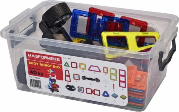 Pro provoz jsou třeba 3 baterie AAA 1,5V (nejsou součástí balení). Kreativní magnetická stavebnice Magformers umožňuje sestavovat velké množství trojrozměrných objektů, pomocí dvourozměrných plastových mnohoúhelníků. Magformers procvičuje jemnou motoriku, podněcuje tvořivost, učí děti barvy a základní geometrické tvary. Rozměry dílků a vhodně volené tvary zajišťují maximální možnou bezpečnost hračky. Materiál, z kterého je stavebnice vyrobena splňuje nejpřísnější hygienická a zdravotní kritéria. Dílky jsou dostatečně velké, nelze je spolknout a jsou prakticky nerozbitné. MAGFORMERS lze velmi dobře kombinovat i se známou magnetickou stavebnicí Geomag.