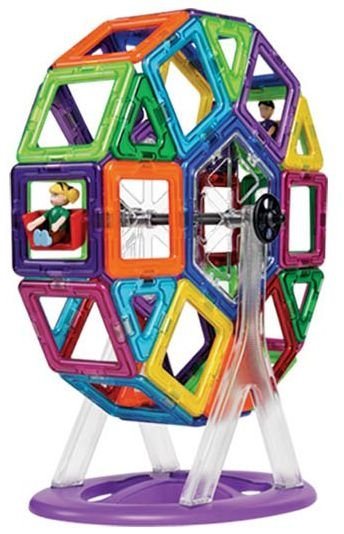 Magformers Carnival je tematická stavebnice, ze které lze sestrojit mnoho variací točící se pouťové atrakce (houpačka, ruské kolo, karusel). Sada obsahuje 24 čtverců (včetně figurek holčičky a chlapečka), 12 trojúhelníků, 2 šestiúhelníky a 8 speciálních dílků. Vhodné pro děti od 3 let. Počet dílků: 46 Kreativní magnetická stavebnice Magformers umožňuje sestavovat velké množství trojrozměrných objektů, pomocí dvourozměrných plastových mnohoúhelníků. Magformers procvičuje jemnou motoriku, podněcuje tvořivost, učí děti barvy a základní geometrické tvary. Rozměry dílků a vhodně volené tvary zajišťují maximální možnou bezpečnost hračky . Materiál, z kterého je stavebnice vyrobena splňuje nepřísnější hygienická a zdravotní kritéria. Dílky jsou dostatečně velké, nelze je spolknout a jsou prakticky nerozbitné MAGFORMERS lze velmi dobře kombinovat i se známou magnetickou stavebnicí Geomag.