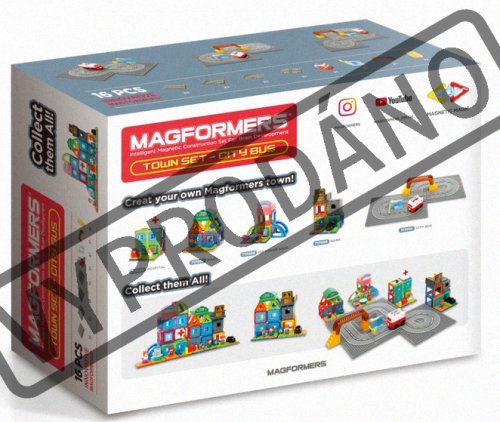 Sada obsahuje 11 kusů panelů s vodící drážkou pro autobus, který je opatřen vlastním pohonem napájeným ze 2 baterií typu AAA (nejsou součástí balení), sklopnou závoru a můstek pro pěší. Z panelů lze sestavit různé druhy dopravních komunikací. Roztomilý autobus projíždí po městečku dokola po sestavené silnici (konečný návrh rozvržení je jen na vás). Na čelní masce autobusu je dotykový spínač, který při najetí do sklopné „Stop-Go“ bariéry (závory) autobus v jízdě zastaví. Jakmile závoru nadzvednete, autobus pokračuje ve své okružní jízdě městečkem dál. Autobus je naváděn výklopným raménkem s háčkem, který udrží při jízdě požadovaný směr podél naváděcí drážky. Přepínač „free play“ umožňuje jízdu autobusu i po rovných plochách mimo drážkové panely. Sada „Autobus“ je kompatibilní se všemi sadami Magformers a je vhodné ji kombinovat s ostatními sadami série „MĚSTEČKO“ (Town set). Typické je využití coby centrální části města, které lze okolo postavit z libovolných dílků stavebnic Magformers. Tato sada neobsahuje žádné magnetické dílky, nicméně lze využít i samostatně bez potřeby jiných dílků Magformers. V tom případě získáte jen samotnou „autodráhu“ s busem, závorou a můstkem. Stavebnice série MAGFORMERS Městečko (Town set) jsou navrženy tak, aby si malí stavitelé mohli vybudovat svoje vlastní obce a města dle vlastních představ. Na výběr mají celkem 5 tematických sad: Nemocnice, Tržiště, Cukrárna, Banka a Autobus. Každou z nich můžete využít i samostatně (včetně sady Autobus, která bude ovšem sama o sobě jen malou autodráhou s autobusem a pár doplňky bez magnetů). Mnohem zajímavější bude nakombinovat 2 anebo více sad Městečka najednou (lze postupně přikupovat) nebo doplnit o jakékoliv jiné dílky stavebnic Magformers, aby celé městečko ožilo a nabídlo malým architektům netušené možnosti celou scénu rozšířit a obměňovat. Stavebnice série Městečko jsou plně kompatibilní se všemi jinými dílky Magformers. Pokud nasbíráte všech 5 typů městečka, získají stavby na pestrosti a můžete si vystavět své vlastní město dle vaší představivosti. S městečkem si můžete užít ještě více zajímavých příběhů. Sada obsahuje: 11 kusů panelů s vodící drážkou a 4x plastové příslušenství (které tvoří závoru a můstek) a pojízdný autobus Vhodné pro děti od 3 let. Počet dílků: 16 Pro provoz jsou třeba baterie 2ks AAA (nejsou součástí balení). Kreativní magnetická stavebnice Magformers umožňuje sestavovat velké množství trojrozměrných objektů, pomocí dvourozměrných plastových mnohoúhelníků. Magformers procvičuje jemnou motoriku, podněcuje tvořivost, učí děti barvy a základní geometrické tvary. Rozměry dílků a vhodně volené tvary zajišťují maximální možnou bezpečnost hračky . Materiál, z kterého je stavebnice vyrobena splňuje nejpřísnější hygienická a zdravotní kritéria. Dílky jsou dostatečně velké, nelze je spolknout a jsou prakticky nerozbitné. MAGFORMERS lze velmi dobře kombinovat i se známou magnetickou stavebnicí Geomag.