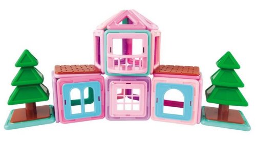 Magformers Mini house je krásně navržena a fantasticky sestavená sada obsahující 42 kusů. Je vynikající stavebnicí pro každou architektku a je vybavena speciálními klip-in doplňky určenými pro stavby budov - jako jsou balkón, okna a vše potřebné ke stavbě domu snů v pastelově růžové a tyrkysové barvě. Můžete postavit cokoli od domků, chat či rekreačních domů kompletně i se stromy. Sada obsahuje 18 čtverců, 12 trojúhelníků, 1 okno jednokřídlé, 1 okno dvoukřídlé, 1 okno dělené, 1 balkón, 6 cihlových výplní a 2 stromy. Vhodné pro děti od 3 let. Počet dílků: 42 Kreativní magnetická stavebnice Magformers umožňuje sestavovat velké množství trojrozměrných objektů, pomocí dvourozměrných plastových mnohoúhelníků. Magformers procvičuje jemnou motoriku, podněcuje tvořivost, učí děti barvy a základní geometrické tvary. Rozměry dílků a vhodně volené tvary zajišťují maximální možnou bezpečnost hračky . Materiál, z kterého je stavebnice vyrobena splňuje nepřísnější hygienická a zdravotní kritéria. Dílky jsou dostatečně velké, nelze je spolknout a jsou prakticky nerozbitné MAGFORMERS lze velmi dobře kombinovat i se známou magnetickou stavebnicí Geomag.