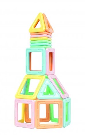 Sada pro nejmenší pro první seznámení s geniální stavebnicí MAGFORMERS v pastelových barvách. Dílky jsou plnobarevné (bez klasického poloprůzračného efektu). Mají zesílené stěny a jsou odolnější proti oděrům a pronikání vlkosti. Absolutní zdravotní nezávadnost pro nezbytné ochutnávky dílků je samozřejmostí. Součástí balení jsou výukové karty , podle kterých se děti naučí stavět jednoduché domečky a geometrická tělesa. Modelové předlohy slouží k navedení dětí a rodičů k vymýšlení nových tvarových kombinací a schematických modelů. Počet dílků: 30 18 čtverců a 12 trojúhelníků Kreativní magnetická stavebnice Magformers umožňuje sestavovat velké množství trojrozměrných objektů, pomocí dvourozměrných plastových mnohoúhelníků. Magformers procvičuje jemnou motoriku, podněcuje tvořivost, učí děti barvy a základní geometrické tvary. Rozměry dílků a vhodně volené tvary zajišťují maximální možnou bezpečnost hračky . Materiál, z kterého je stavebnice vyrobena splňuje nepřísnější hygienická a zdravotní kritéria. Dílky jsou dostatečně velké, nelze je spolknout a jsou prakticky nerozbitné. MAGFORMERS lze velmi dobře kombinovat i se známou magnetickou stavebnicí Geomag. Vhodné pro děti od 18 měsíců. Magnetická stavebnice Můj první Pastelle 30 dílků