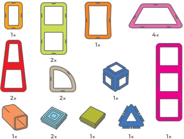 Kreativní magnetická stavebnice Magformers umožňuje sestavovat velké množství trojrozměrných objektů, pomocí dvourozměrných plastových mnohoúhelníků. Magformers procvičuje jemnou motoriku, podněcuje tvořivost, učí děti barvy a základní geometrické tvary. Rozměry dílků a vhodně volené tvary zajišťují maximální možnou bezpečnost hračky . Materiál, z kterého je stavebnice vyrobena splňuje nepřísnější hygienická a zdravotní kritéria. Dílky jsou dostatečně velké, nelze je spolknout a jsou prakticky nerozbitné MAGFORMERS lze velmi dobře kombinovat i se známou magnetickou stavebnicí Geomag. ilustrační video magnetické stavebnice Magformers