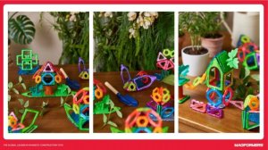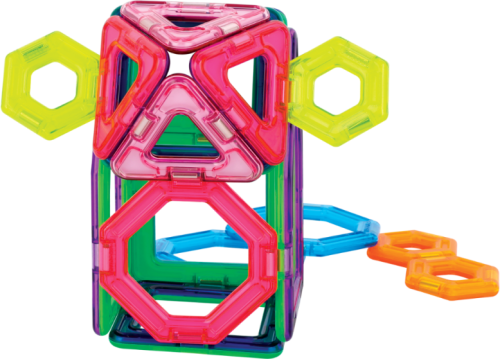 Kreativní magnetická stavebnice Magformers umožňuje sestavovat velké množství trojrozměrných objektů, pomocí dvourozměrných plastových mnohoúhelníků. Magformers procvičuje jemnou motoriku, podněcuje tvořivost, učí děti barvy a základní geometrické tvary. Rozměry dílků a vhodně volené tvary zajišťují maximální možnou bezpečnost hračky . Materiál, z kterého je stavebnice vyrobena splňuje nepřísnější hygienická a zdravotní kritéria. Dílky jsou dostatečně velké, nelze je spolknout a jsou prakticky nerozbitné. MAGFORMERS lze velmi dobře kombinovat i se známou magnetickou stavebnicí Geomag.