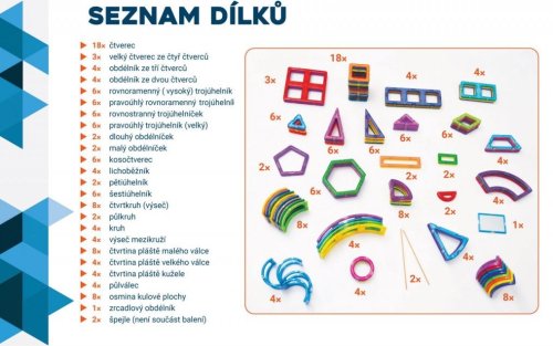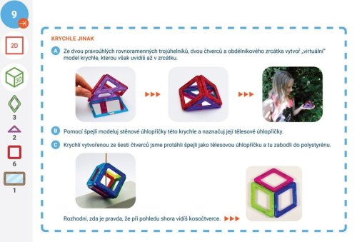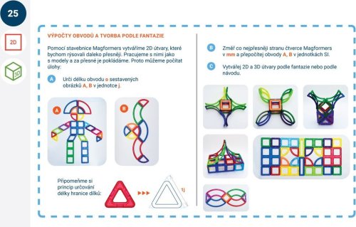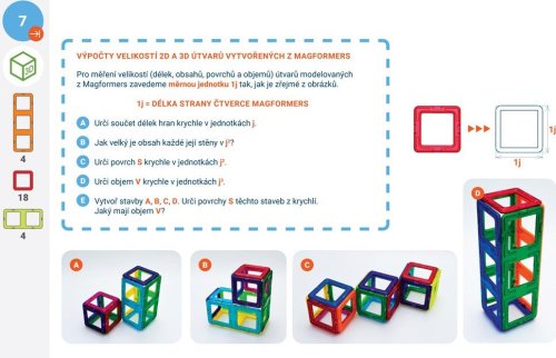Výukové karty Rovina a prostor je materiál určený pro přímou podporu učitelů ZŠ nebo rodičů. Jejich obsah koresponduje se současnými požadavky kladenými na žáky českých škol v 7. -9. ročníku základní školy. Celý projekt souborů výukových karet s dílky Magformers je realizován ve spolupráci s akreditovanou lektorkou dalšího vzdělávání učitelů, RNDr. Marií Kupčákovou, Ph.D. Geometrické karty jsou sestavené v souladu s platnými učebními osnovami, upevňují a rozvíjejí geometrické poznatky žáků, ale zároveň sledují současné požadavky na zjednodušení učební látky. Jeho posláním je opět zatraktivnit učivo a rozvíjet u dětí geometrické poznávání roviny (2D geometrie) a prostoru (3D geometrie). Výukové karty jsou rozděleny do dvou úrovní: 7. ročník základní školy (světle modrý podklad čísla stránek) 9. ročník základní školy (tmavě modrý podklad čísla stránek) Řazení karet a rozdělení do ročníků nejsou závazné a lze je přizpůsobit školním programům. Při opakování učiva může pedagog používat karty z předcházejících dílů nazvaných Obrázky a stavby (box Geometrie-1) a Rovina a prostor (box Geometrie-2). Geometrická témata jsou rozvíjena cyklicky. Autorka celého konceptu Magformers geometrie RNDr. Marie Kupčáková, Ph.D., se po celý profesní život věnovala výuce geometrie. Nyní působí jako lektorka dalšího vzdělávání učitelů. Vydává metodické materiály s názvem Tvořivá geometrie. Výukové karty „2D +amp; 3D geometrie – Magformers geometrie 3“ byly zpracovány podle původní publikace „2D a 3D geometrie – Geometrické karty pro ZŠ2 a nižší gymnázia” (ISBN 978-80-907214-6-3). Obsahuje 38 výukových karet.