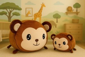 Rozkošné opičí mládě se svou milující maminkou. Set dvou vyšívaných tematických plyšových hraček z velmi kvalitní měkké plyše, vhodné pro všechny věkové skupiny. Velikostně menší zvířátko je vhodné i pro nejmenší děti jako mazlíček nebo hračka a starší děti využijí větší zvířátko třeba jako polštářek na cesty, do auta, nebo jako dekorace do svých pokojíků. Velikost zvířátek je 20 a 40 cm. Použité materiály: Vrchní látka 100% polyesterové vlákno, výplň 100% polyester. Možnost praní v pračce na 30°C. Baleno v průhledném sáčku. Vhodné pro děti od 0 měsíců.