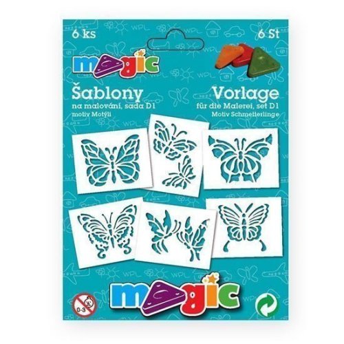 Sada 6ks papírové šablony na malování. Materiál bílý karton 220g. Doporučujeme pro malování s magickými voskovkami (technika frotáž), vhodné i pro tupování s temperami, pro malování s foukacími fixami nebo techniku malování plastelínou. Rozměry 11x14cm.