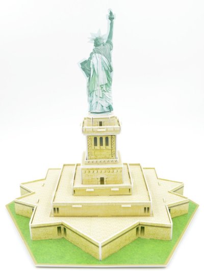 Model americké Sochy Svobody, která je charakteristickým znakem New Yorku, můžete mít doma i Vy! 3D puzzle Socha Svobody je vyrobený ze speciálního materiálu - asi 3mm silné pěny potažené laminovaným potištěným papírem. Sestavování prostorového modelu bude bavit nejen zkušeného skládače, ale i začátečníka. Dílky se k sobě sestavují bez použití lepidla a nůžek - předražené dílky pouze jednoduše vylomíte z archu. Hotové puzzle bude sběratelským i dekorativním doplňkem bytu, kanceláře nebo dětského pokoje. Socha Svobody, anglicky Statue of Liberty, plným názvem Liberty Enlightening the World (z francouzského La Liberté éclairant le monde čili „Svoboda přinášející světlo světu“) je socha stojící na Ostrově svobody u New Yorku v USA. Ačkoliv by katastrálně měl náležet do Hudson County, New Jersey, od roku 1664 je Ostrov svobody součástí New Yorku. Více na Wikipedii Rozměr složeného puzzle cca 30 x 26 x 29 cm