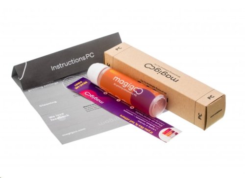 MAGIGOO je snadno použitelné tekuté "lepidlo" ke zvýšení přilnavosti první vrstvy při tisku. Dobrá přilnavost první vrstvy je důležitá, protože tato vrstva tvoří základ celého tisku. MAGIGOO je rozpustné ve vodě, tudíž ho po tisku snadno odstraníte. Po každém tisku doporučujeme lepidlo odstranit pomocí navlhčeného hadříku, tím se zamezí nadbytečnému nahromadění lepidla MAGIGOO na tiskové ploše.