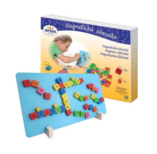 Nová vzdělávací hra, díky které se děti zábavnou formou učí poznávat písmenka, skládat slovíčka nebo celé věty. Součástí hry je 69x kostiček s písmenky, 7x s diakritickými znamínky a 1x magnetická tabulka s podstavcem. Hlavní vlastnosti: výrobek splňuje požadavky EU na bezpečnost hraček vhodný pro děti od 3 let