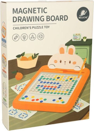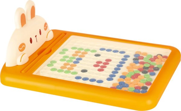 2x magnetické pero k uspořádání obrázků 118 magnetických tlačítek na plastové tabuli s roztomilým králíčkem 12 přiložených karet s nápady na vzory podporuje kreativitu dětí a procvičování manuálních dovedností