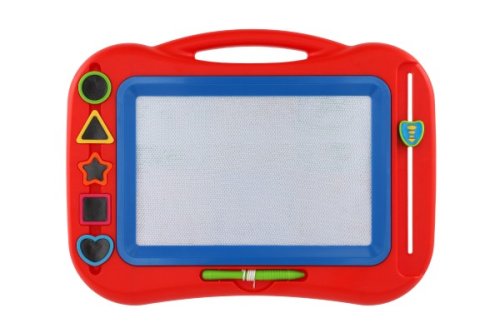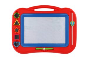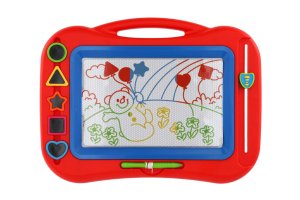 Magnetická mazací tabulka v krásném barevném provedení je kreativní pomůcka pro kreslení. A pokud se dětem obrázek nebude líbit, v mžiku ho smažou pomocí mazací lišty. Děti si zábavnou formou zlepšují motoriku a rozvíjí si kreativitu. Součástí balení je tužka na tabulku a pět razítek. Vhodné od 3 let.