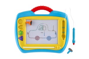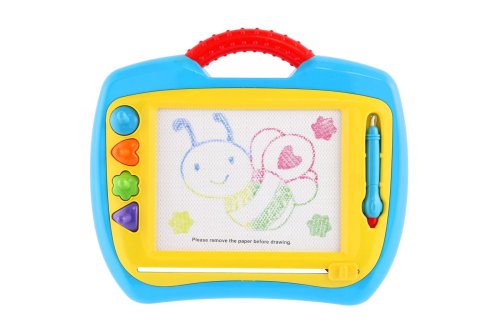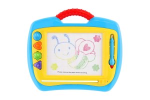 Začíná vaše dítě malovat po všech čistých plochách, které vaše domácnost nabízí? Dopřejte mu z malování ještě větší radost. Díky magnetické tabulce vaše dítě namaluje magnetickou tužkou své dílo, aniž by ušpinilo sebe, své okolí nebo spotřebovalo papír. Lehkým pohybem ze strany na stranu, lze celé dílo smazat a začít znovu. Rozměr krabice: 38 x 32 x 5 cm Vhodné od 3 let.
