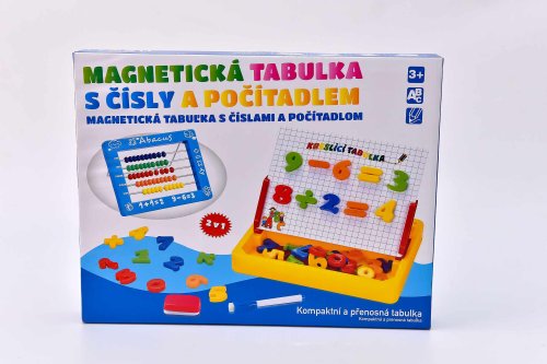 Magnetická tabulka 2v1. Na tabulku můžeš malovat přiloženou fixou a poté smazat. Součástí jsou magnetická čísla. Naučíš se základní matematické počty.