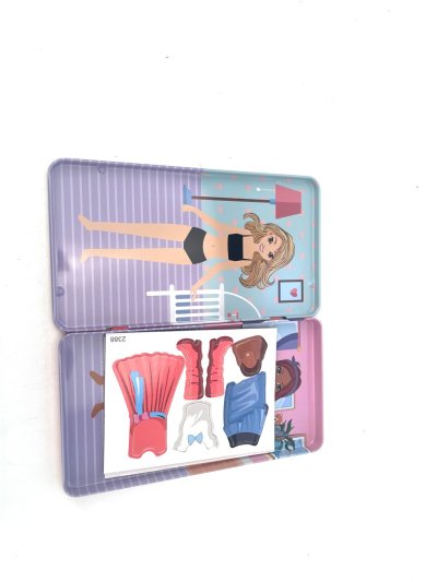 Magnetické oblékání panenek v krabičce je kreativní hra určená pro malé děti od 3 let, která podporuje rozvoj fantazie, jemné motoriky a smyslu pro styl. Hra obsahuje dvě panenky zobrazené na dvou kovových hracích deskách, které jsou součástí praktické plechové krabičky. Krabička je lehká a kompaktní, což z ní činí ideální společník na cesty i doma.