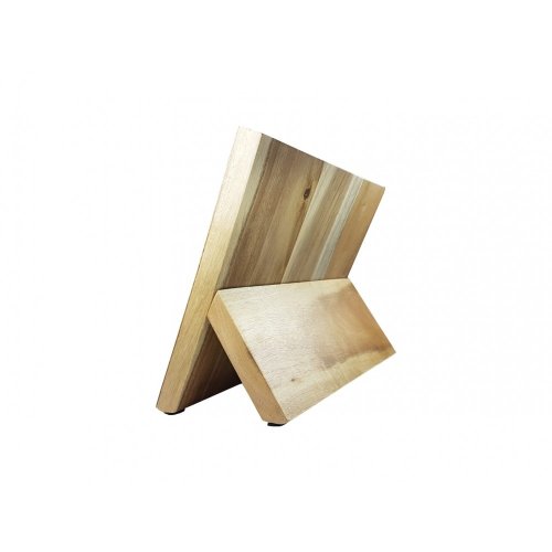 Pro výrobu tohoto držáku se používá dřevo akácie. Při použití akáciového dřeva se šetří životní prostředí, protože nedochází ke kácení vzrostlých ušlechtilých stromů. Stojan je nejen krásný svým designem, ale je i praktický. Můžete na něj přiložit nože z obou stran.