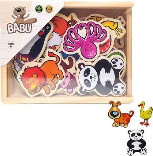 Dřevěné magnetky zvířat, v dárkové dřevěné krabičce. Sada obsahuje 20 magnetek různých zvířátek.