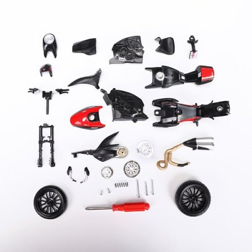 Ducati Diavel Carbon. Sestavte si svůj motocykl. Motocykl je vyroben z vysoce kvalitního tlakově litého kovu s plastovými díly. Je vybaven autentickými kabely a hadicemi, ovládacím pružinovým odpružením, pohyblivým podstavcem a bočním stojanem. Po dokončení je plně funkční podrobnou replikou. Na předlakované kovové tělo není potřeba žádné lepidlo ani barva. Včetně šroubováku a montážního nástroje. Rozměry balení: 18,5x25,5x5,5cm. Věk: 8+