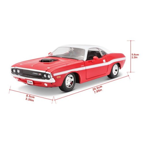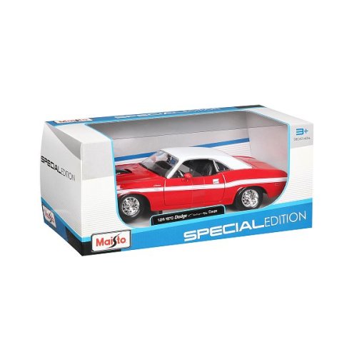 Special Edition 1:24 1970 Dodge Challenger R/T Coupe, červený. Modely Special Edition jsou sbírkou krásného designu s vysokým důrazem na přesnost detailů. Modely jsou vyrobeny z litého kovu s plastovými detaily. Modely v měřítku 1:24 patří mezi nejoblíbenější. Většina z modelů Special Edition má otevírací dveře, kufr nebo kapotu. Baleno v krabičce. Nevhodné pro děti do 3 let. Rozměry balení: 10,5 x 23,3 x 11,4 cm. Věk 3+