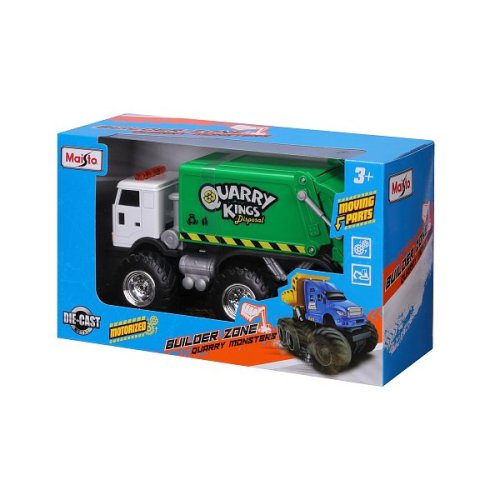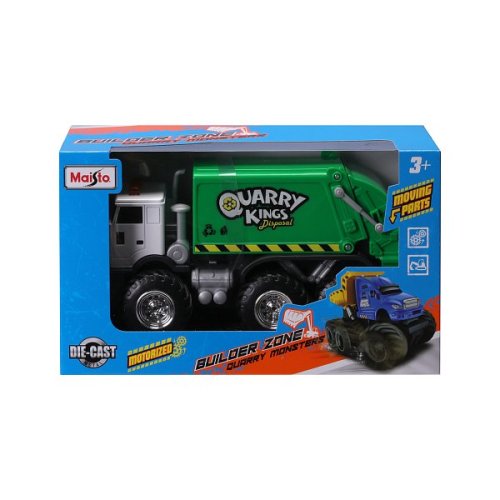 Builder Zone Quarry Monsters užitkové vozy. Model popelářského auta v zeleno-bílém designu, jako monster truck na 6 velkých kolech a s pohonem na setrvačník. Model je vyroben z plastu s kovovými doplňky a pohyblivými funkčními částmi. Modely autíček disponují perfektním propracováním a designem. Autíčko je dlouhé 22 cm. Rozměry balení: 15,2 x 25,4 x 10,8 cm. Věk: 3+