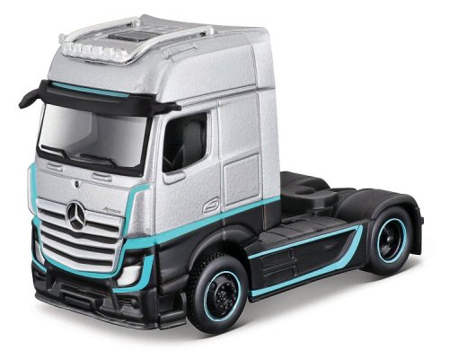 Mercedes-Benz Actros 1851, stříbrno-černá. Zcela nové kovové modely tracků s plastovými doplňky. Modely mají gumová kolečka, otevírání přední kapoty, detailní provedení interierů, včetně výrazného barevného provedení, které jim umožňuje vyniknout od ostatních modelů. Balení: 16,45x 8,25x 7,6cm. Věk: 3+