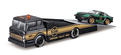 Ramp Truck + 1980 Datsun 280ZX (S130). Jedna z nejdéle fungujících řad na zakázku odlévaná pod tlakem, tyto sady pro 2 vozidla jsou silnější než kdy předtím. Ať už vás na příští autosalon tahají nebo vezou na valníku, Elite Transport je tou správnou cestou. Včetně dvou vozidel. Tělo z tlakově litého kovu s plastovými díly. Rozměry: 22,2x17,15x4,2cm. Věk: 8+