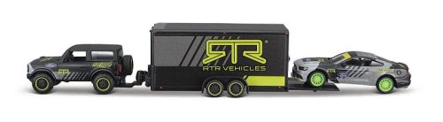 2021 Ford Bronco, Car Trailer, 2015 Ford Mustang GT. Kovové auto s vlekem + kovové autíčko v měřítku 1:64. Modely autíček s perfektním propracováním a designem mají kvalitní kovové osy kol. Balení: 29,2x7,3x6cm Věk: 8+