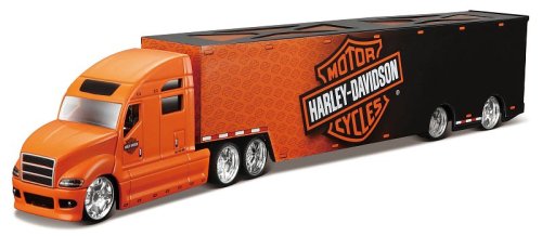 Harley-Davidson Haulers, černo-oranžová. Náklaďák v oficiální licenci Harley-Davidson v měřítku 1:64. Kovová kabina a plastový návěs, který vyklopí. Takový realistický náklaďák může plnit funkci nejen hračky, ale také sběratelského modelu na poličce dětí i dospělých. Balení: 38,4x10,2x6,3cm. Věk: 8+