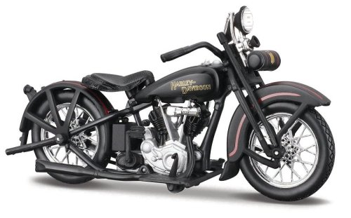 1928 JDH Twin Cam™. S JDH Harley-Davidson konečně začlenil svou dlouho vyvíjenou závodní technologii do silničního motocyklu, což zákazníci vždy chtěli. Vyrobeno z kvalitních dílů s detailní povrchovou úpravou. Otočná řídítka a odpružené zadní kolo. Rozměry: 17,8x10,2x7cm. Věk: 3+