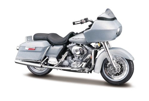 Harley-Davidson Motorcycles 1:18 2002 FLTR Road Glide®, metalická šedá. Model ze série 42 collection v měřítku 1:18 má velmi dokonalé, detailní provedení jednotlivých částí a kvalitní barevné provedení. Kovový model s plastovými doplňky. Model má řiditelnou vidlici, pohyblivý boční stojan. Nevhodné pro děti do 3 let. Rozměry balení: 10,6 x 17,78 x 6,35 cm. Věk: 3+