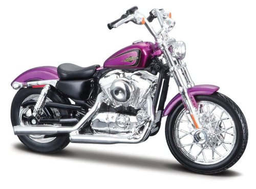 Harley-Davidson Motorcycles 1:18 2013 XL 1200V Seventy-Two™, fialová. Model ze série 38 collection v měřítku 1:18 má velmi dokonalé, detailní provedení jednotlivých částí a kvalitní barevné provedení. Kovový model s plastovými doplňky. Model má řiditelnou vidlici, pohyblivý boční stojan. Nevhodné pro děti do 3 let. Rozměry balení: 10,6 x 17,78 x 6,35 cm. Věk: 3+