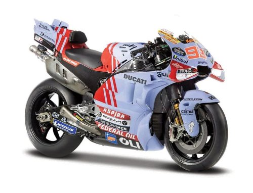 Motocykl GP Racing 1:18 Gresini Racing 2024, #93 Marc Marquez. Model oficiálního licencovaného závodního týmu má velmi dokonalé, detailní provedení jednotlivých částí a kvalitní barevné provedení. Kovový model s plastovými detaily. Model má volně se otáčející kola a je včetně podpěrného stojanu. Baleno v krabičce. Nevhodné pro děti do 3 let. Rozměry balení: 10,5 x 17,1 x 7 cm. Věk: 3 +