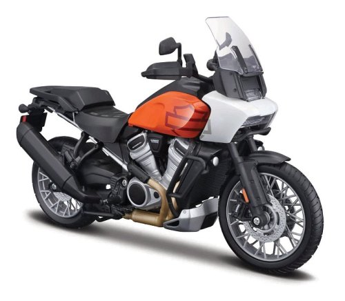Harley-Davidson 1:12 2021 Pan America 1250. Detailní provedení jednotlivých částí a kvalitní barevné provedení. Kovový model s plastovými doplňky. Model má řiditelnou vidlici, pohyblivý boční stojan a přibližnou délku 8“. Nevhodné pro děti do 3 let. Baleno v krabičce. Rozměry balení: 12,7 x 22,23 x 8,9 cm. Věk: 3 +