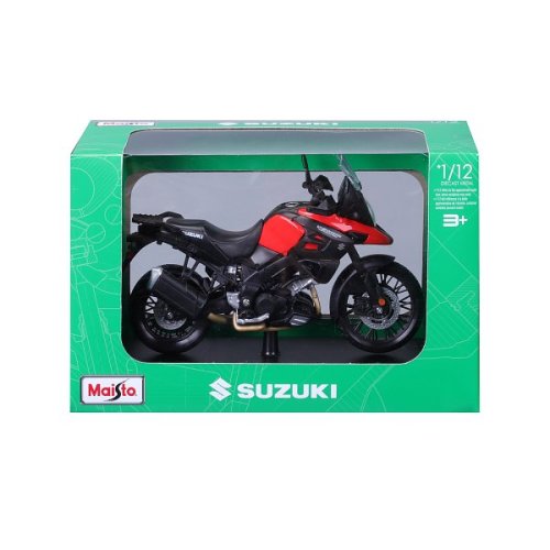 Special Edition Motorcycles 1:12 Suzuki V-Strom. Modely motocyklů Special Edition jsou balené včetně stojánku v krabičce v barvách, které jsou specifické pro výrobce. Kovový model s plastovými doplňky. Model má odpruženou zadní nápravu, pohyblivý boční stojan a volně otáčející kola. Nevhodné pro děti do 3 let. Rozměry balení: 13,97 x 22,3 x 8,89 cm. Věk: 3 +