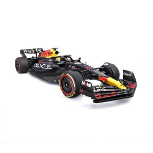 RC model Oracle Red Bull Racing RB19 - #11 Sergio Peréz v měřítku 1:10 je precizně zpracovaná replika, která zachycuje elegantní aerodynamický design a odvážnou barvu soutěžního vozu formule Red Bull Racing 2023. Je zkonstruován pro rychlost a obratnost a nabízí nadšencům strhující závodní zážitek, který zahrnuje autentické zvuky motoru RB19. Přibližně 57 cm dlouhý. Autentické zvuky Red Bull RB19. 2,4 GHz pro špičkový výkon. Až 4 hráči mohou řídit v jednom okamžiku a na jednom místě. Dosah ovládání 35 metrů. Ovladač v profesionálním stylu s proporcionálním ovládáním rychlosti. Nastavení seřízení řízení. Vozidlo využívá lithiovou dobíjecí baterii (je součástí balení). Nabíjecí kabel USB (součástí dodávky). Ovladač funguje na 2 baterie AA (jsou součástí). Baleno v krabičce. Rozměry auta: 20,39 x 12,19 x 57,14 cm. Rozměr balení: 21,6 x 67,3 x 24,5 cm. Věk: 8+